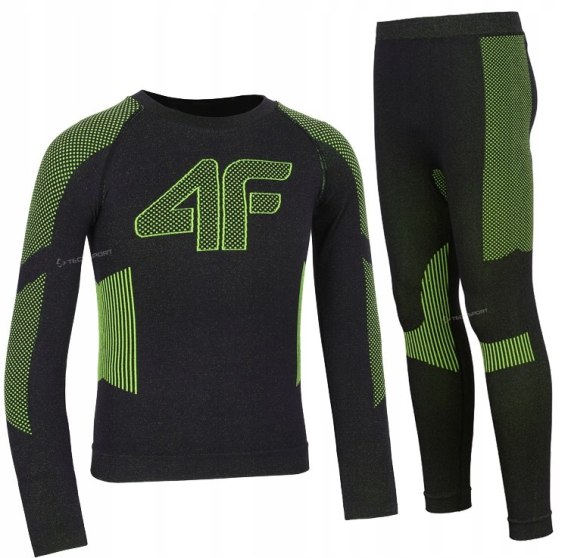 Juniorski komplet bielizny termoaktywnej (góra i dół) wykonanej z elastycznej dzianiny w bezszwowej konstrukcji. Dzięki technologii 4FSkin idealnie dopasowuje się do ciała, umożliwiając pełną swobodę ruchów. Zastosowanie szybkoschnących włókien 4FDry zapewnia odpowiednią termoregulację oraz odprowadzanie wilgoci podczas zimowych aktywności.