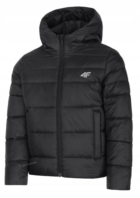 Hydrofobowa impregnacja chroni przed wilgocią, a technologia 4F Warm wspiera komfort termiczny. Kurtka ma regularny krój do bioder, wysoki kołnierz oraz zintegrowany kaptur bez regulacji. Rękawy z mankietami zakończonymi elastyczną gumą, a dwie kieszenie boczne zapinane na zamek ułatwiają przechowywanie drobiazgów. Jednokierunkowy zamek z wewnętrzną plisą ogranicza przenikanie chłodu i wiatru.