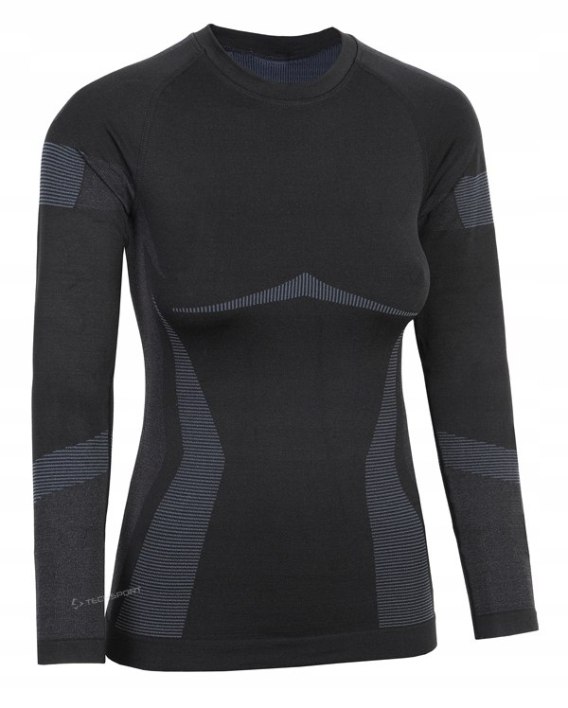 Damska koszulka bielizny termoaktywnej w bezszwowej konstrukcji, wykonanej z szybkoschnącego, odprowadzającego wilgoć materiału, który pomaga w utrzymaniu stałej temperatury ciała podczas wzmożonego wysiłku.