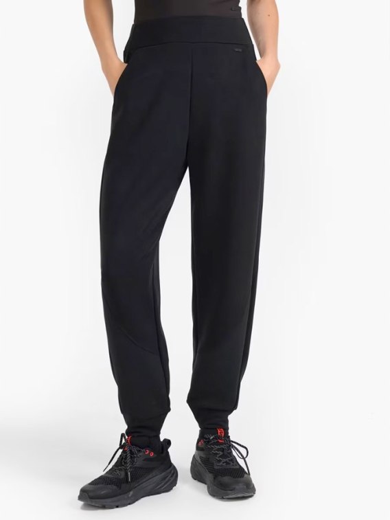 Lekka konstrukcja bez podszycia czyni ten model idealnym wyborem na cieplejsze dni. Subtelne panele z prążkowanej tkaniny podkreślają sportowy charakter spodni, a jednolita kolorystyka pozwala łatwo dopasować je do różnych elementów garderoby.