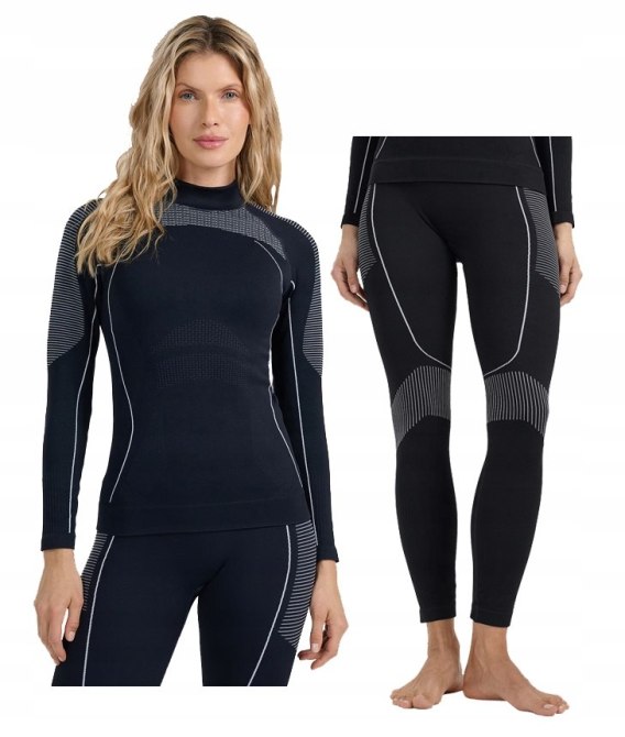 Damski komplet bielizny termoaktywnej  idealny jako pierwsza warstwa odzieży na narty, trekking i zimowe aktywności. Wykonana z grubszego materiału jak na bieliznę termoaktywną dzięki czemu jest cieplejsza od standardowych modeli. Technologia 4FSkin zapewnia efekt drugiej skóry, a bezszwowa konstrukcja minimalizuje ryzyko otarć, oferując pełen komfort nawet podczas intensywnego ruchu. Strefy wentylacyjne i szybkoschnące wykończenie dbają o utrzymanie suchości i odpowiedniej termoregulacji.