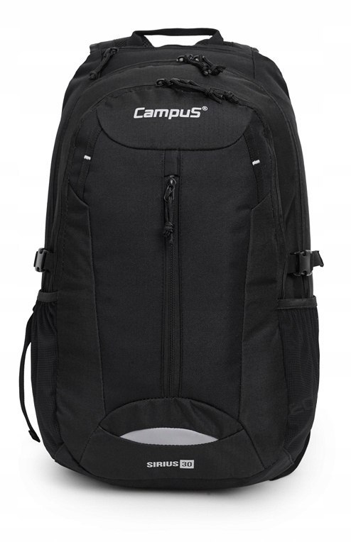 Wysokiej jakości markowy plecak miejski firmy Campus. Model "Sirius 30" idealnie nadaje się na wycieczki, do szkoły lub jako plecak do codziennego użytku. Dzięki zaawansowanemu systemowi nośnemu CDS w połączeniu z systemem wentylacyjnym Air-Con i anatomicznie ukształtowanymi szelkami, plecak bardzo dobrze się nosi, jest wygodny i nawet po długiej wędrówce nie będziemy czuli zmęczenia. Posiada jedną główną komorę z dużym otworem załadunkowym wraz z płaską kieszenią na bukłak, dodatkową mniejszą komorę na drobniejszy sprzęt z organizerem oraz pojemną przednią kieszeń. Solidnie wykonany, dobrze przemyślany i wykończony - dopracowany każdy szczegół. Wykonany z wysokiej jakości materiałów typu: Poliester RIP STOP oraz Poliester 600D. Materiał ten charakteryzuje się bardzo dużą odpornością na przetarcia i rozdarcia. Plecak posiada uchwyt do przenoszenia w dłoni, regulowane szelki wraz z wypełnieniem AIR-MESH oraz elementy odblaskowe zwiększające bezpieczeństwo. Plecak został przystosowany do montażu bukłaka - posiada wewnętrzną komorę na bukłak z wyprowadzeniem rurki na zewnątrz oraz uchwyty na szelce na rurkę. Pas biodrowy stabilizuje plecak na ramionach.
