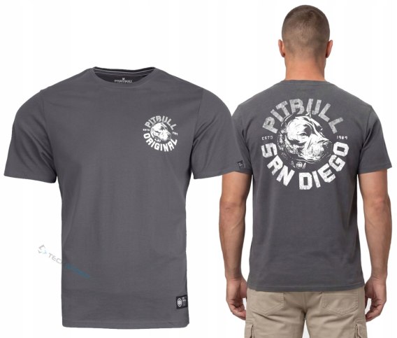 PITBULL KOSZULKA MĘSKA BAWEŁNIANA Z GRAFIKĄ NA PLECACH SZARA / roz. L