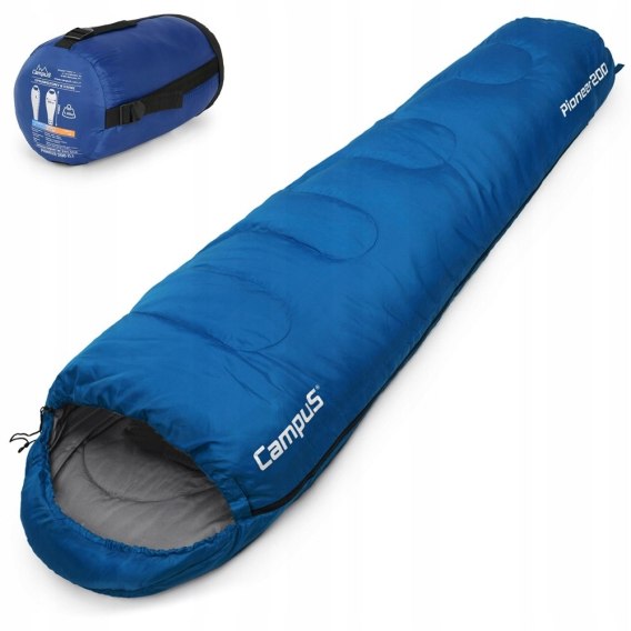 Ładny markowy śpiwór typu mumia renomowanej firmy Campus. Model PIONEER 200 przeznaczony jest dla osób, którzy chcą posiadać markowy produkt za przystępną cenę. Charakteryzuje się dobrymi właściwościami, jakością wykonania oraz opatentowanymi technologiami takimi jak struktura wypełnienia: z serii Promo HOLLOWFIBER-1. Gramatura wypełnienia to 200g/m2. Po spakowaniu śpiwór zachowuje niewielkie rozmiary (wys. 36 x 20 cm). Przeznaczony głównie do użytkowania w sezonie wiosenno-letnim oraz wczesnej jesieni. Śpiwór posiada możliwość łączenia (zamki prawe lub lewe). Praktyczny pokrowiec posiada dodatkowo pasy kompresujące.
